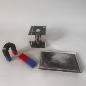 מיפוי שדה מגנטי בבלוק מגנטי ובמלבן שקוף אפשרות להדגמה מויוגרף